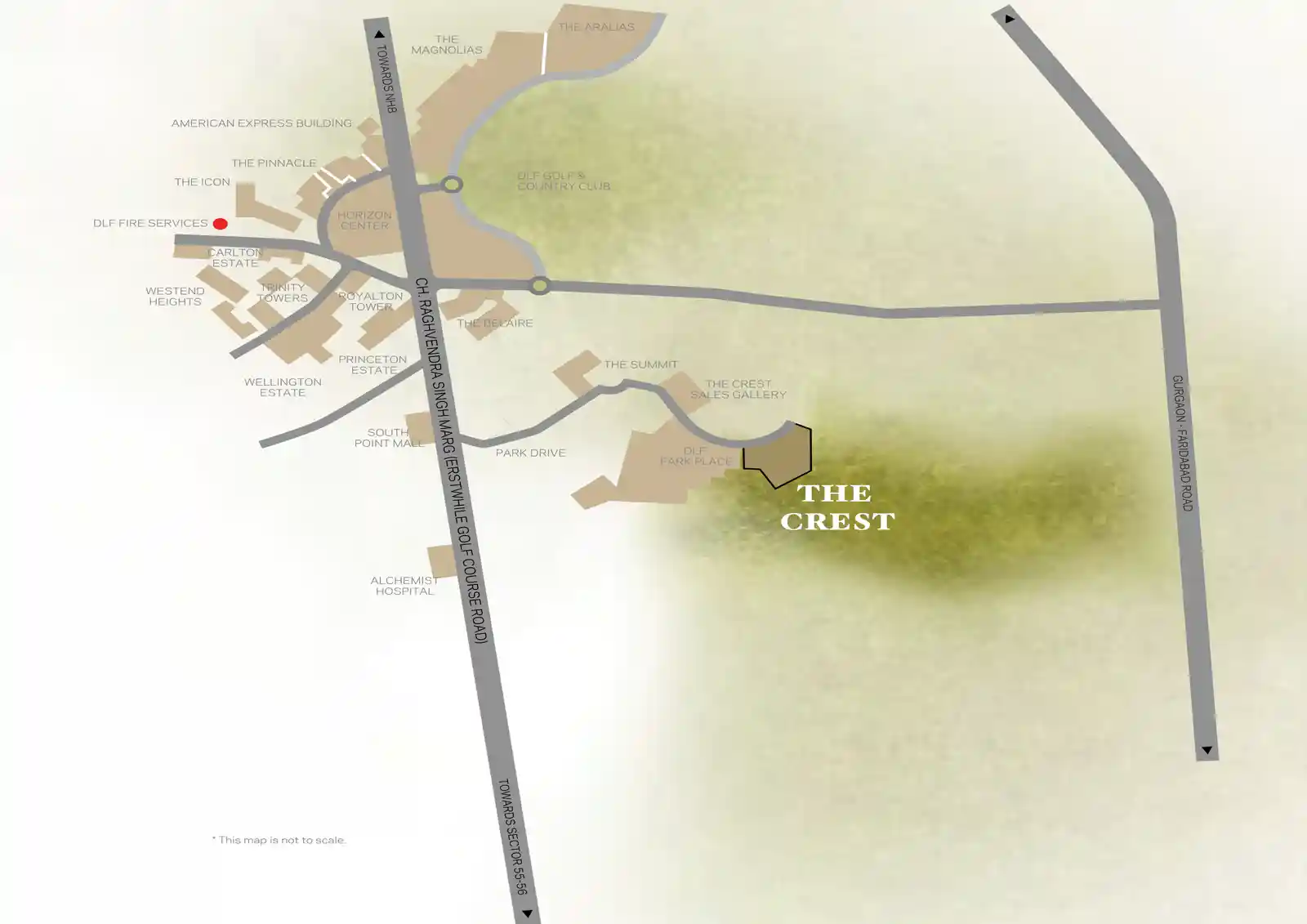 DLF The Crest is located in Sector 54, Gurgaon, a prime location that offers excellent connectivity to major roads like Golf Course Road, Delhi-Gurgaon Road, and NH-48. It is also in close proximity to schools, hospitals, offices, and malls, providing residents with a convenient and vibrant lifestyle. Here are some key location benefits: